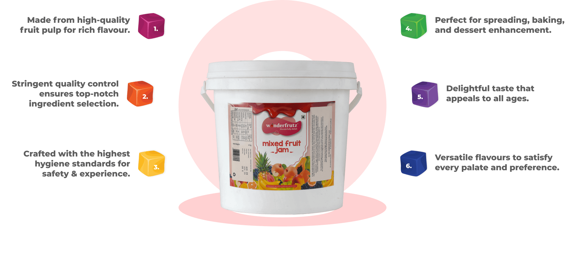 Experience the joy of Wonderfrutz jams, available in delightful flavours like Mix Fruit, Pineapple, and Plain (no colour or flavour). Our jams provide a rich, satisfying taste that’s perfect for spreading on toast or enhancing your favourite dishes. Packaged in convenient 4 kg and 25 kg buckets, for B2B, flavour profiles can be customised as per buyer requirements.